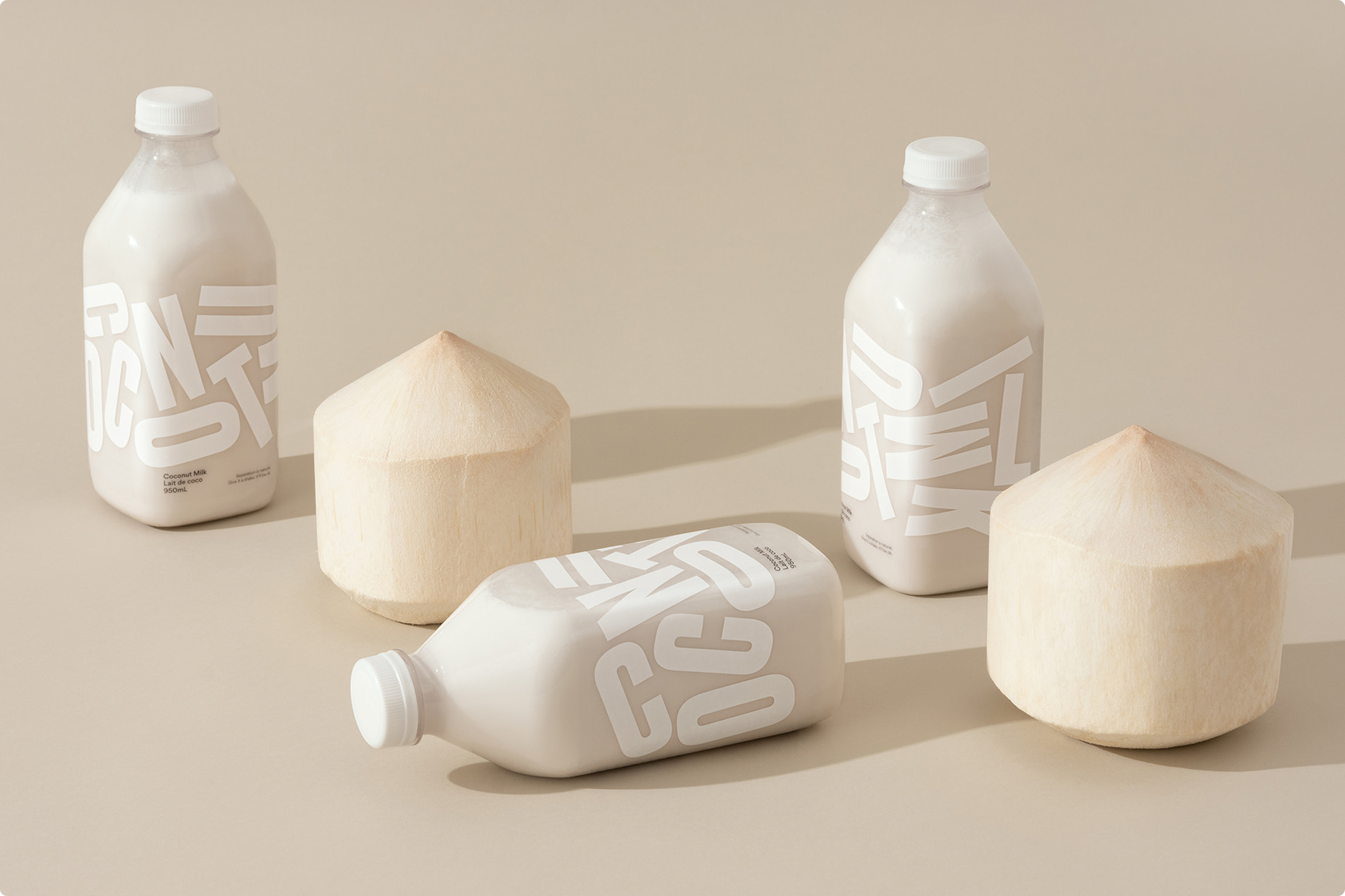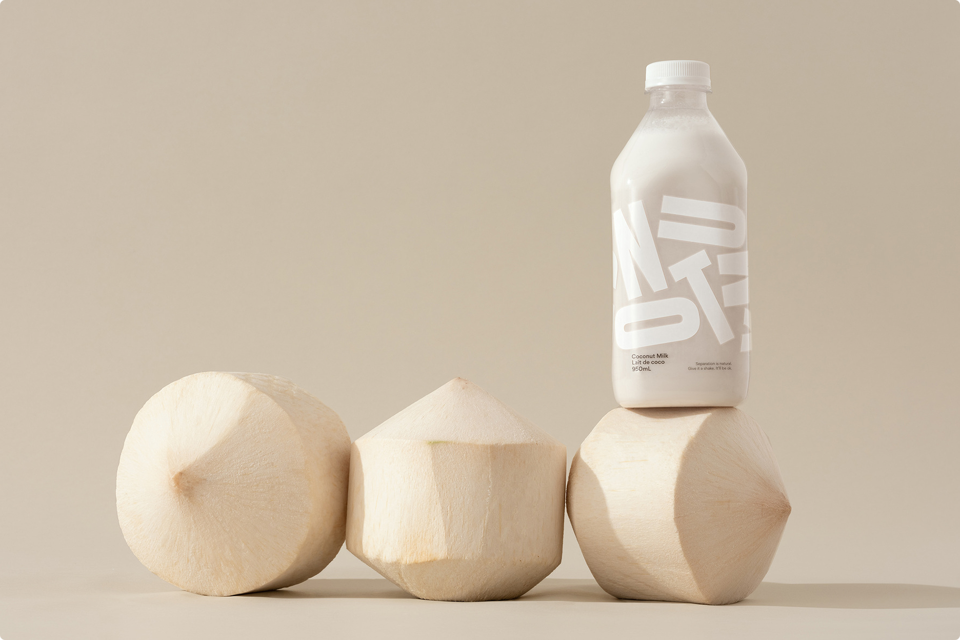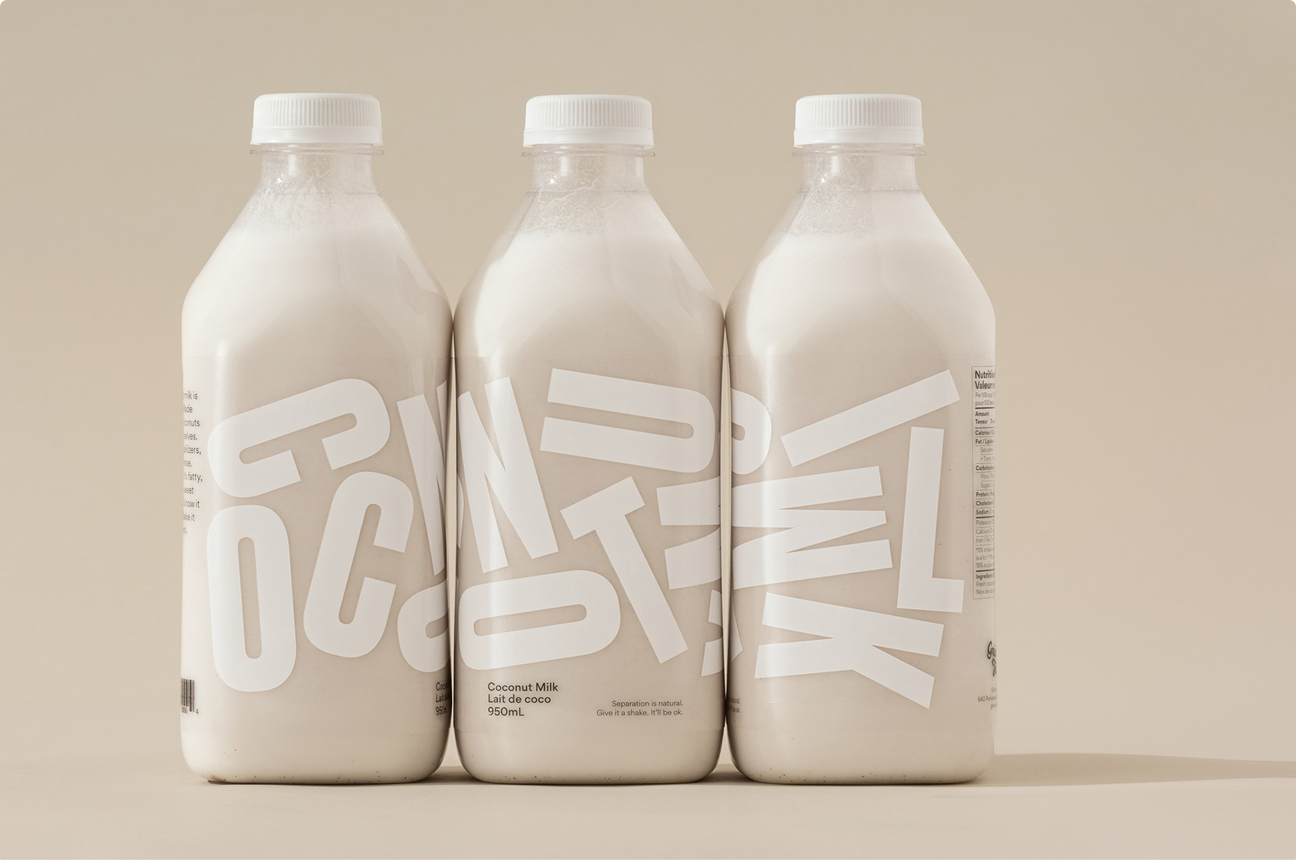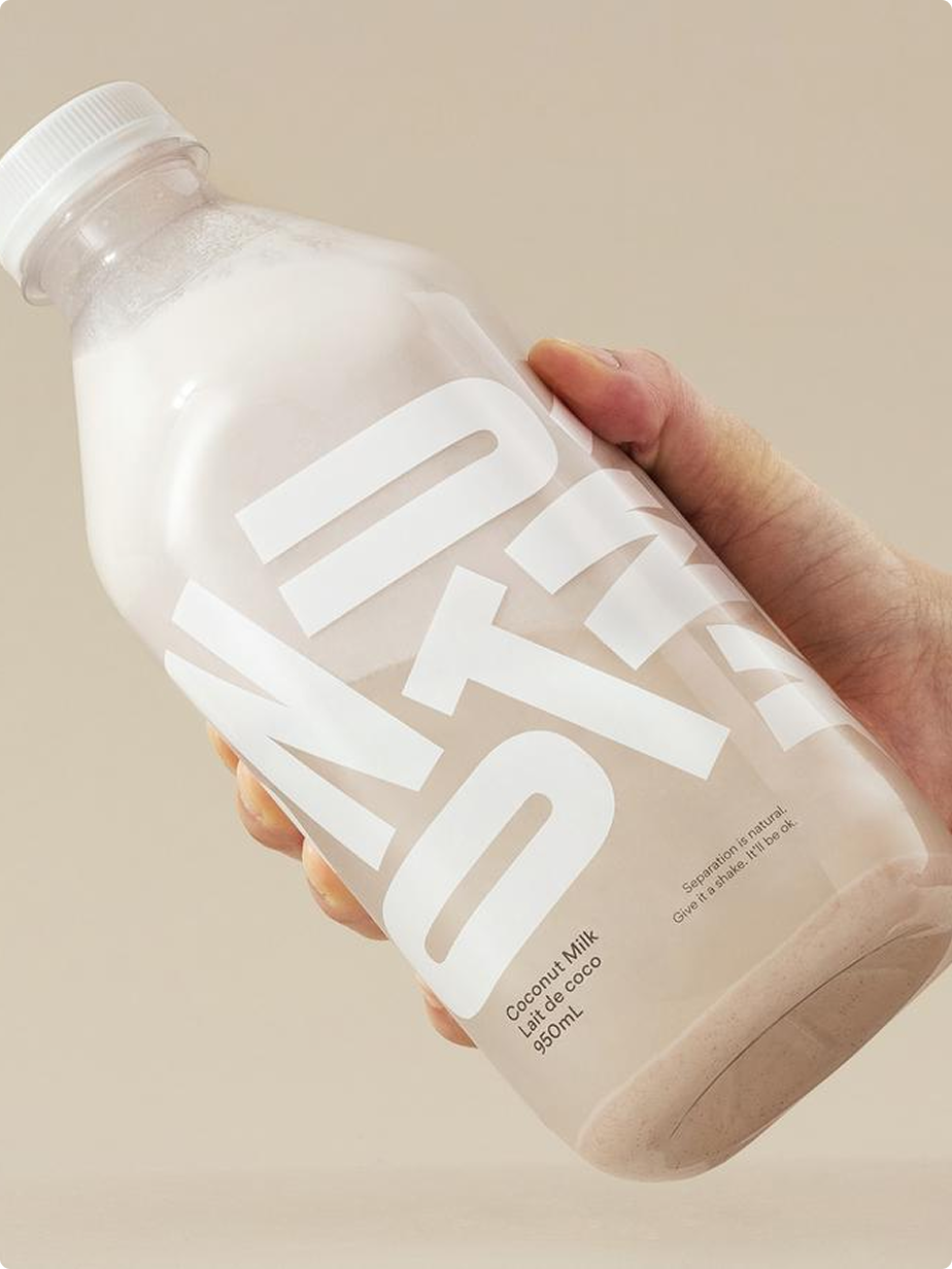Grinning Face’s Coconut Milk is fresh pressed and has only two ingredients: coconut and water, it separates and needs a good shake. We embraced this in our design, using jumbled letters to educate and encourage the consumer to shake it.